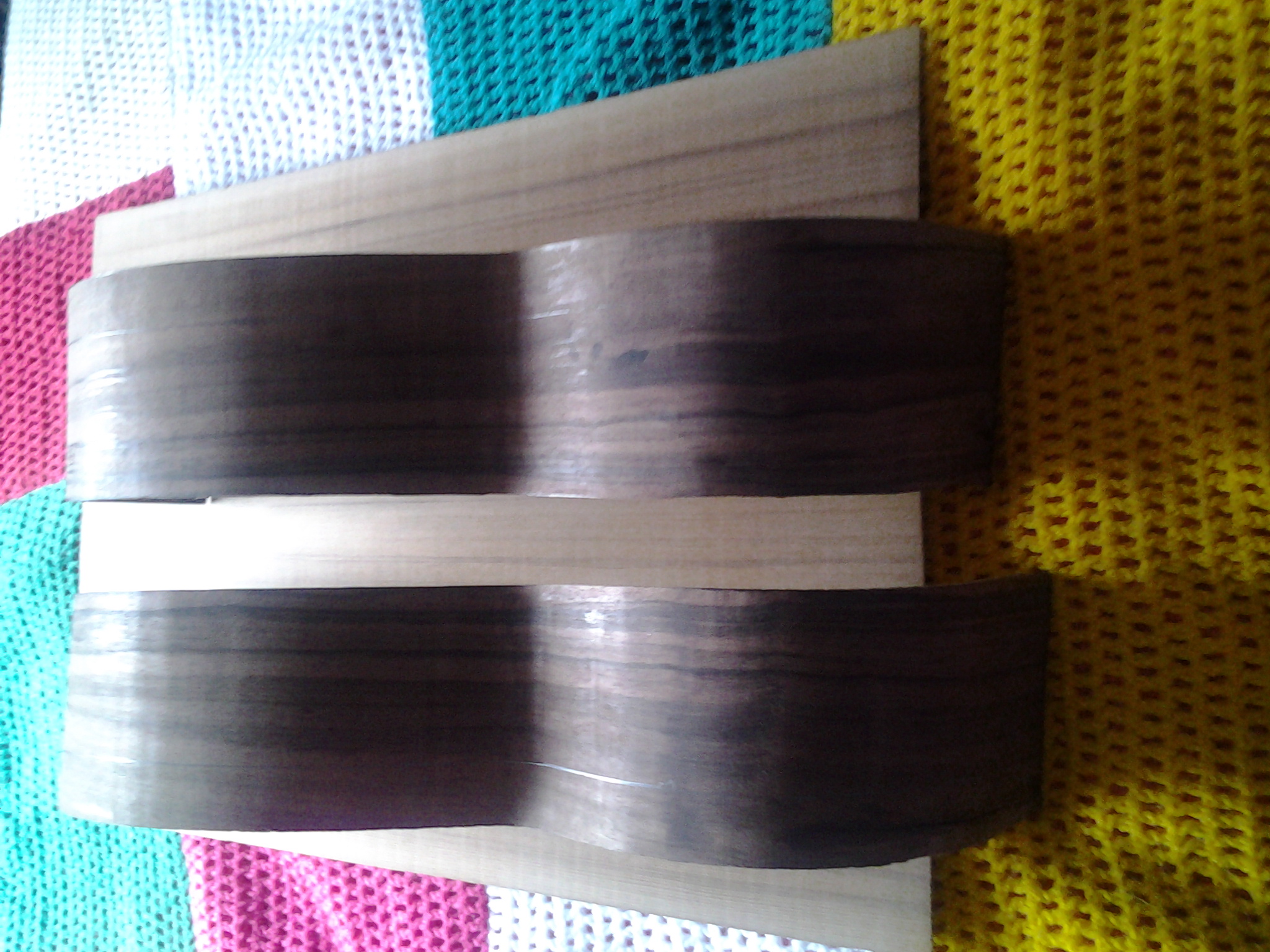 I already have a pair of sides left over from a couple of years ago and I have decided to use them for this guitar. I need to trim them down a bit as I want this guitar to be a slim guitar. I am contemplating how to cut them as that is normally done before bending them.