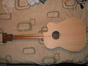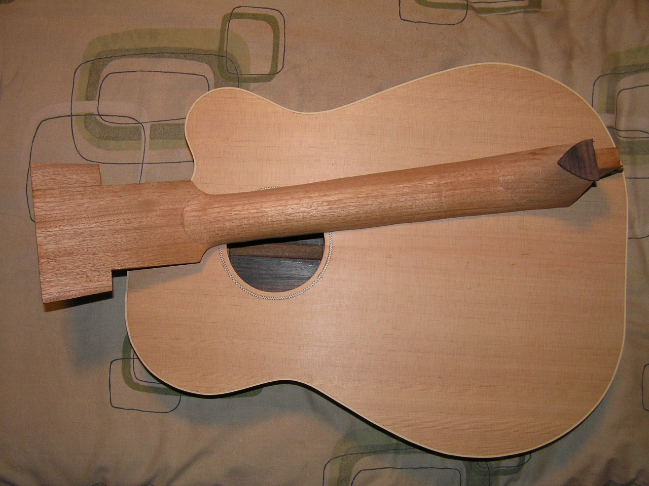I still need to come up with a design for the headstock but outside of that the neck is roughly complete. I still need to put the fret wire into the fingerboard yet. There is probably only a few days work left to do on the steel string but I am not in a hurry so it will probably take me a week.