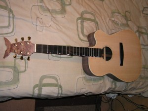 I am giving an animal name to each guitar I make. The first one I made is ‘The Neanderthal’ and the classical guitar is called ‘The Dolphin’.