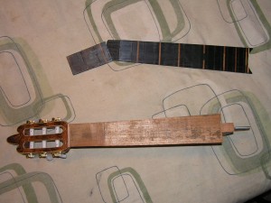 The classical guitar I made has a substandard fret board, I made a bad job of it and I knew it wasn’t as good as it should have been, so I need to replace it.