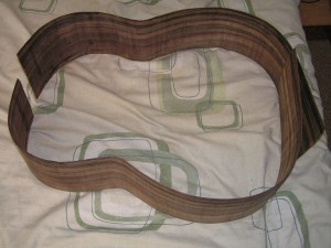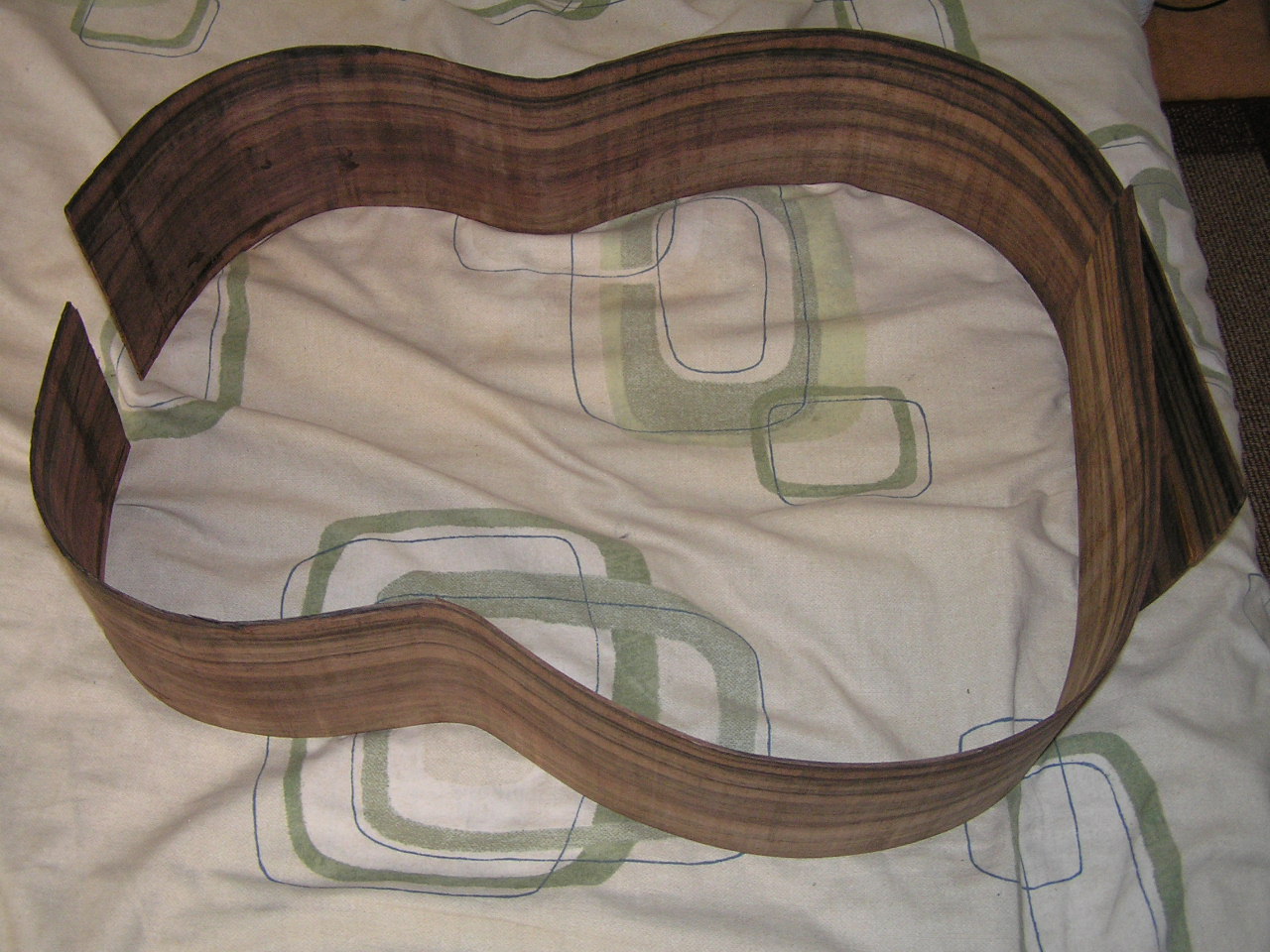 I have bent the Macassar Ebony sides. My new bending iron is a great success and functioned perfectly. I can actually feel the wood go soft as it gets hot, it has made side bending an absolute pleasure. If anyone wants to make something similar then I am happy to supply the source assembly code for the PIC16F876 or PIC16C63, the only other item required to build the bending iron is a 10amp 240vac solid state relay. Just ask and I will post the code on this blog.