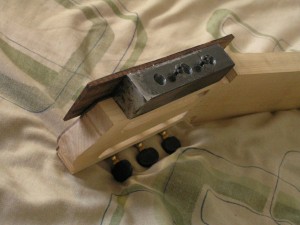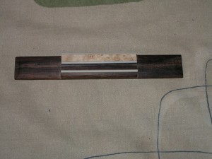 I still have the finger board to to do, I have reduced it down to the correct thickness so I need to cut the fret slots, this is a 25.6″ (650mm) scale and I do not have this scale marked out on my fret cutting jig so I will probably do that next.