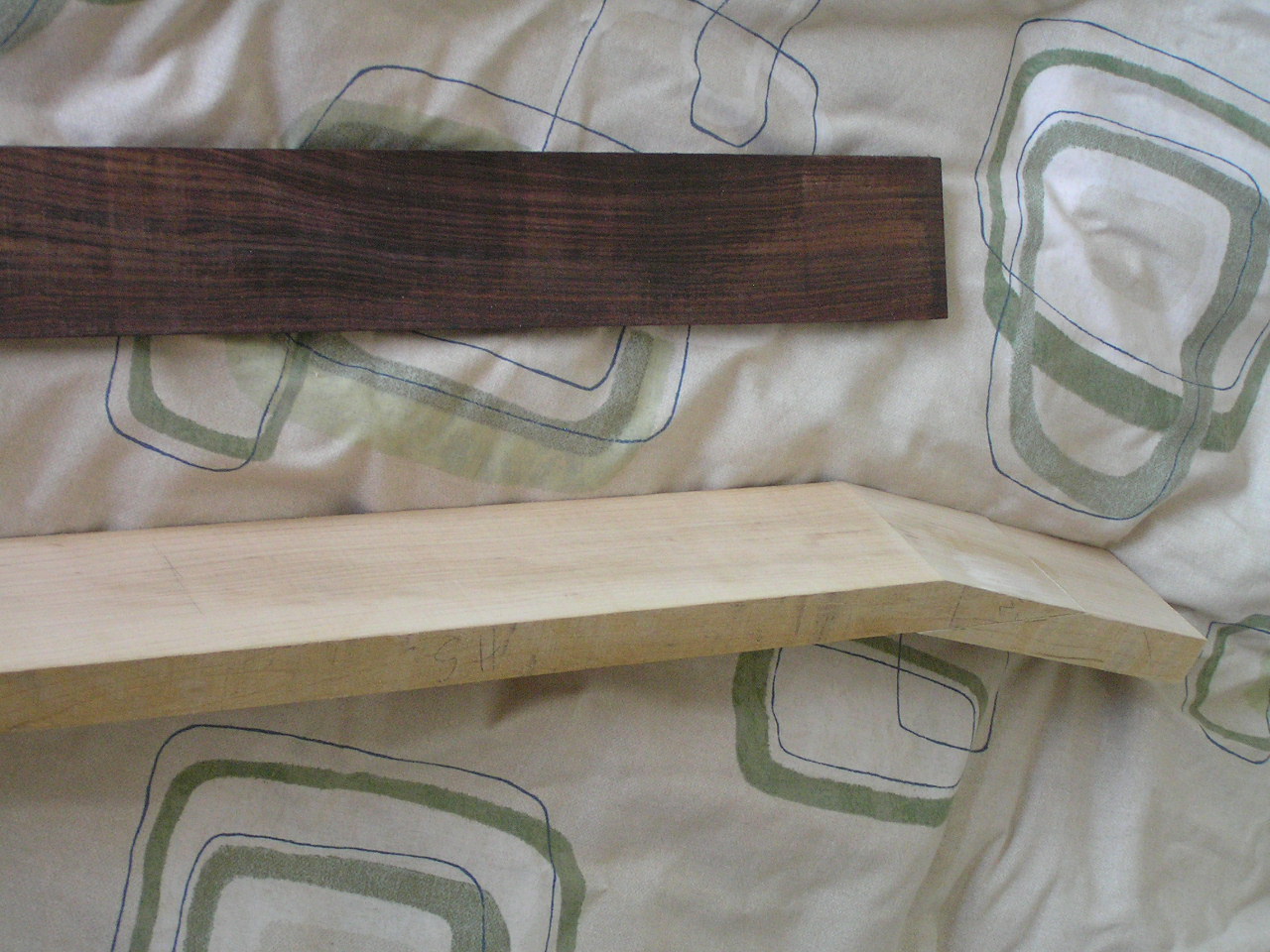 I also placed the fingerboard in the picture because I will be doing that as I do the neck. I need to reduce the fingerboard thickness down to about 6 or 7 millimeters.