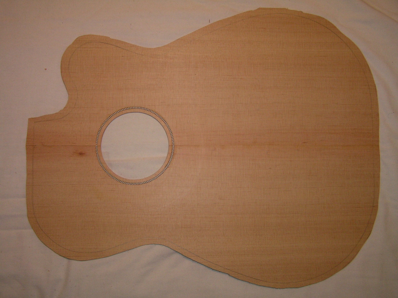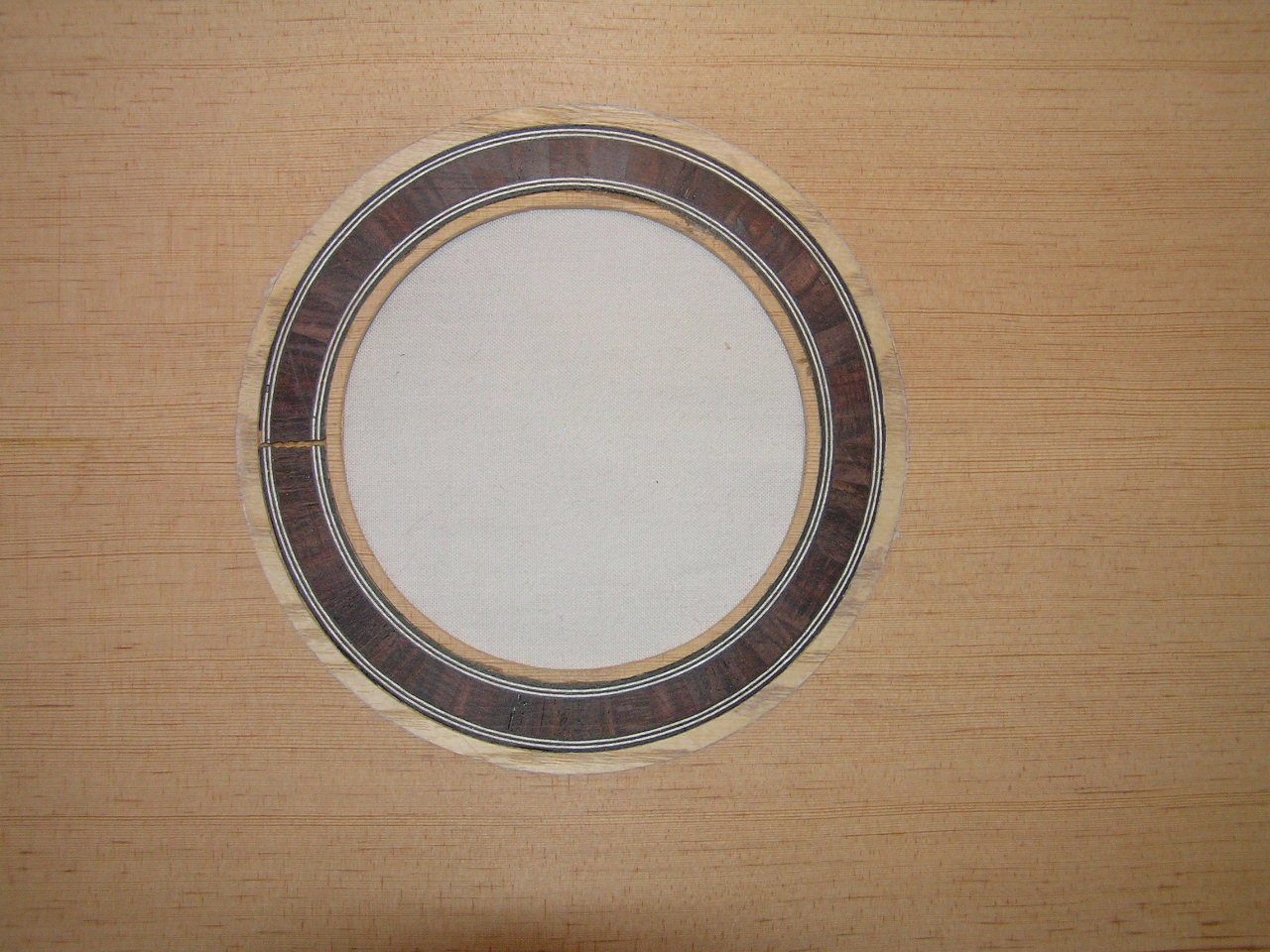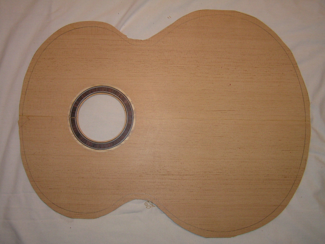 The classical rosette fitting did not go to well, I had two slips with the chisel. I decided I did not want to use the router to fit either of the sound hole inlays. I decided that learning to fit rosettes entirely by hand would be a challenge and I like carving wood. The classical rosette has ended up with an extra ring around the outside (An ash veneer). It was the only way to erase the mistakes. Neither rosettes ended up being as good a fit as they would have if I used a router but they do look okay.