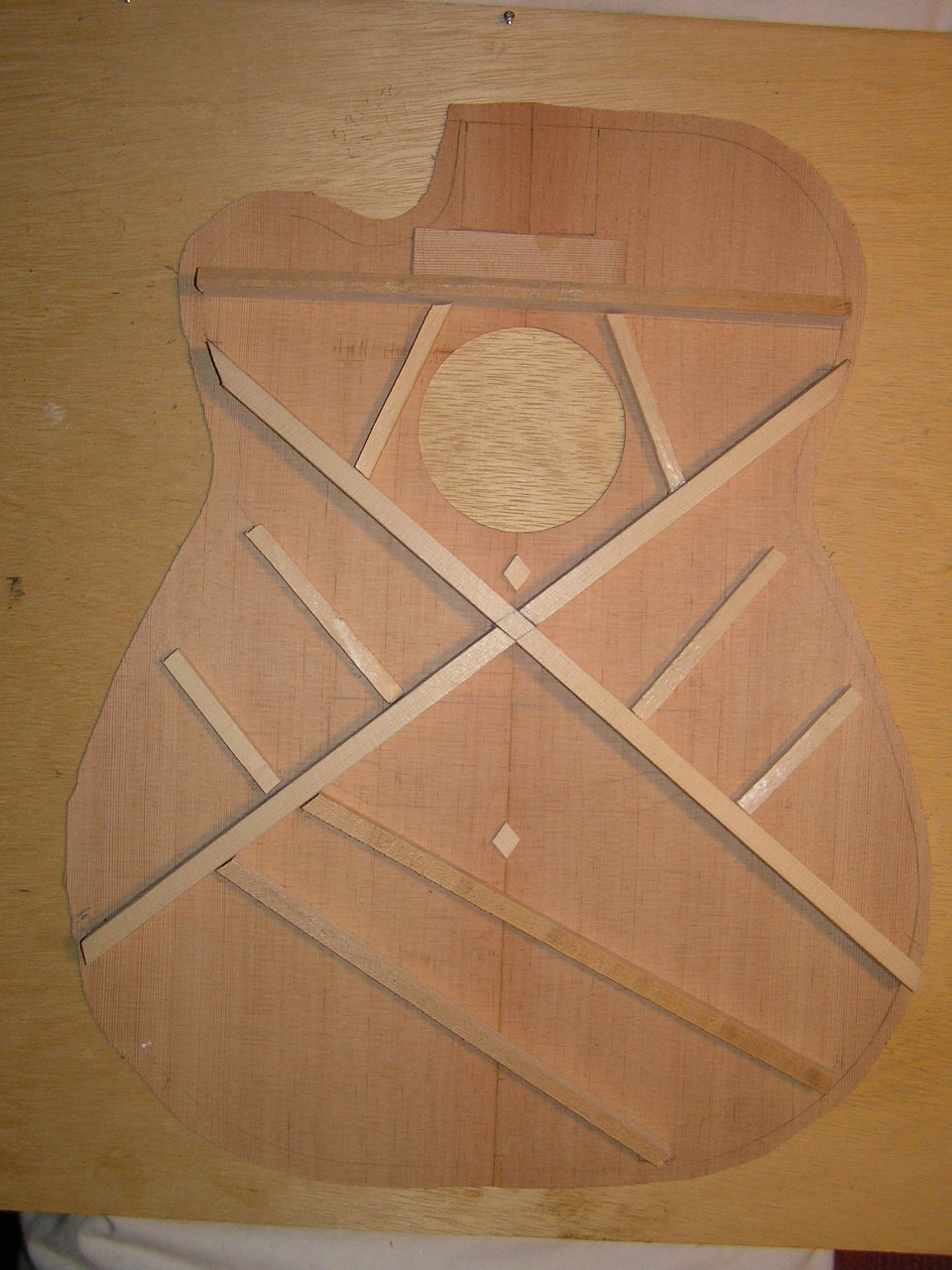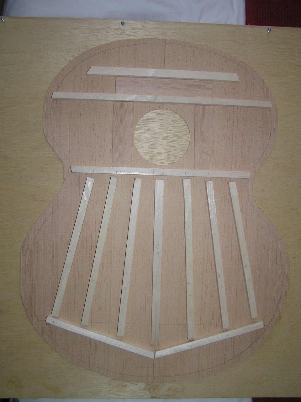 I am still thinking about whether or not I should go for a domed soundboard or just a flattop. Obviously I need to make my mind up before gluing the bracing down.