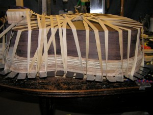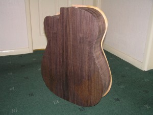 As soon as the glue has set on the CL guitar I will trim that down and give it a quick rub down. I use a spokeshave to trim but the rosewood is quite tough stuff and takes much more time than the mahogany on my first guitar took.